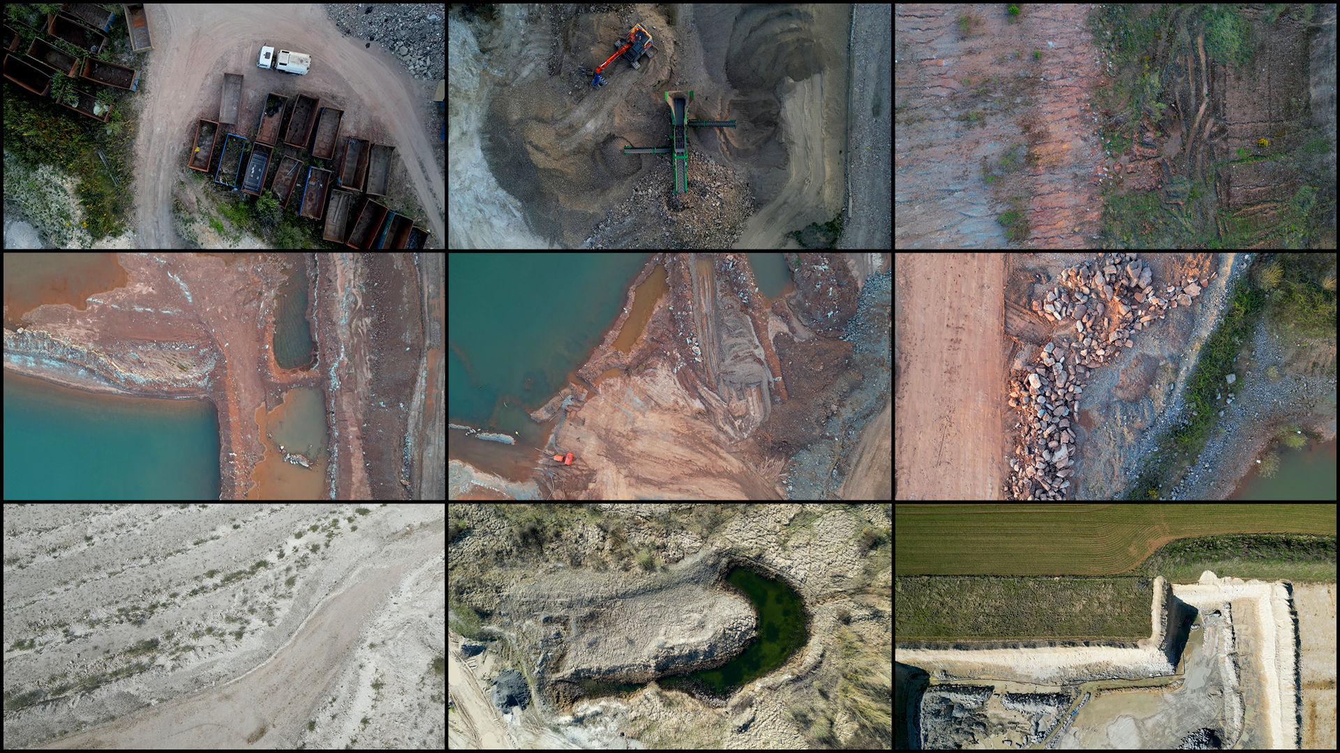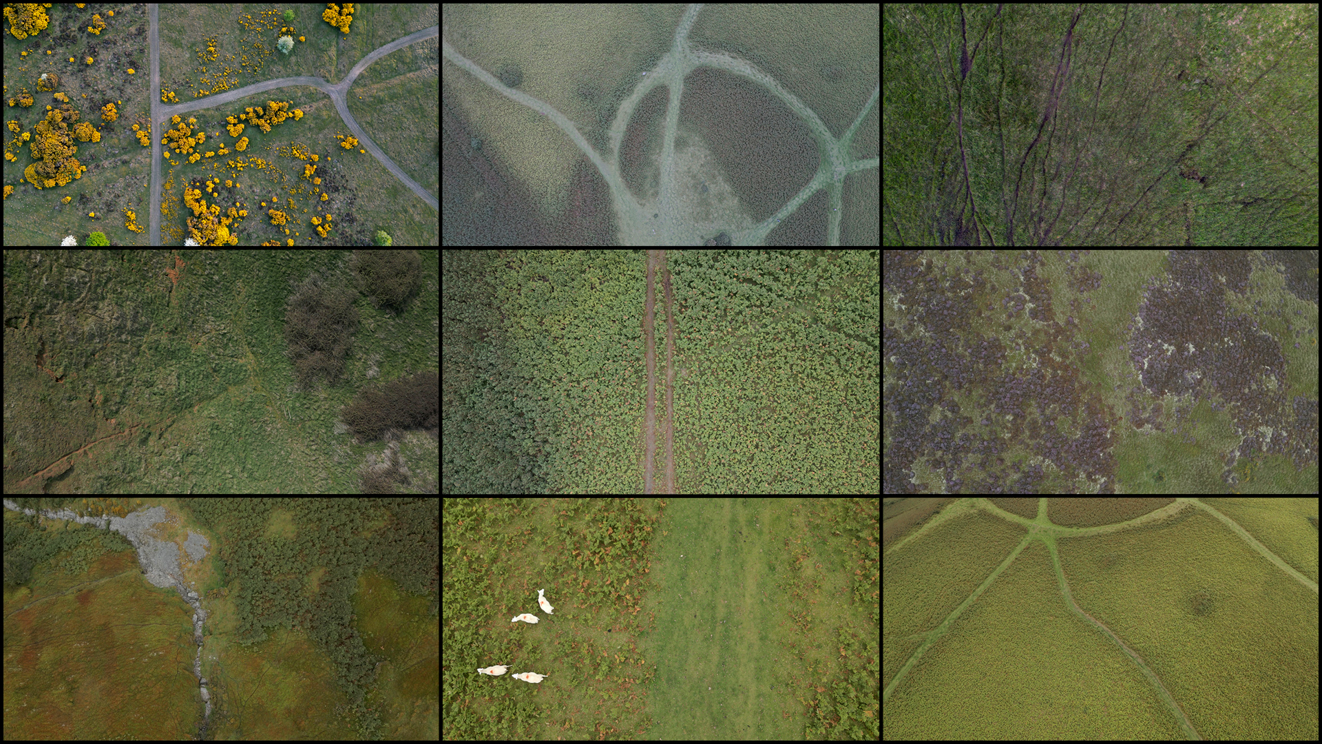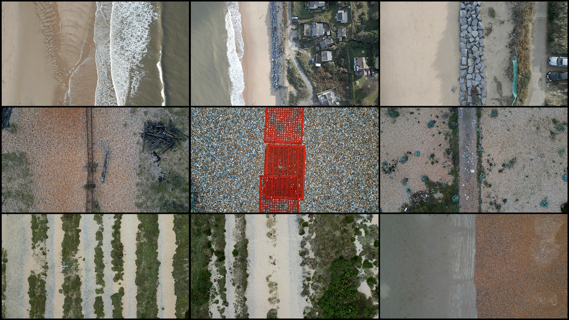 As part of this larger project, Allen focused on gathering of a large amount of aerial drone footage that he filmed himself across the UK between 2022 and 2025. This archive covers 12 distinct landscape typologies: coastal, geological, rivers, wetlands, greenfield, forests, agricultural, Earthworks, brownfield, industrial, transport, and suburban, with a large collection of new footage filmed in 2024 and 2025 in East Anglia and the Norfolk Broads.