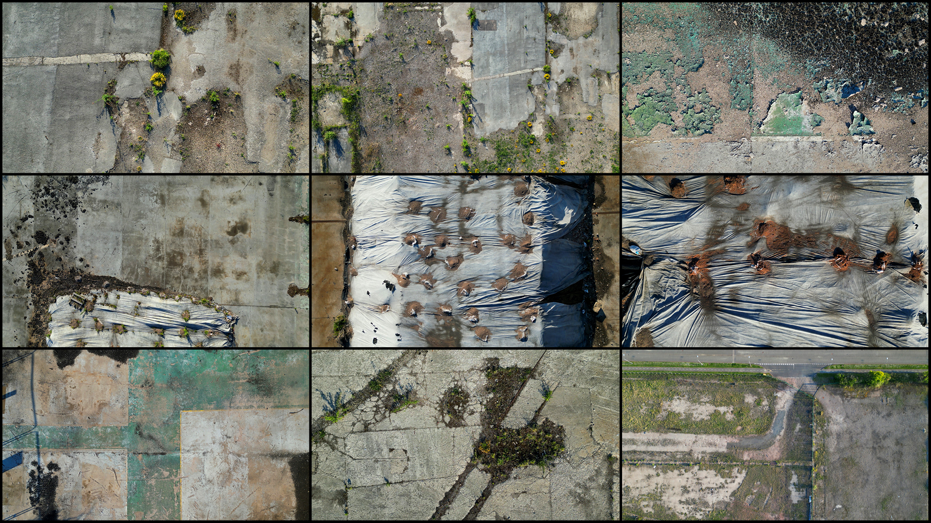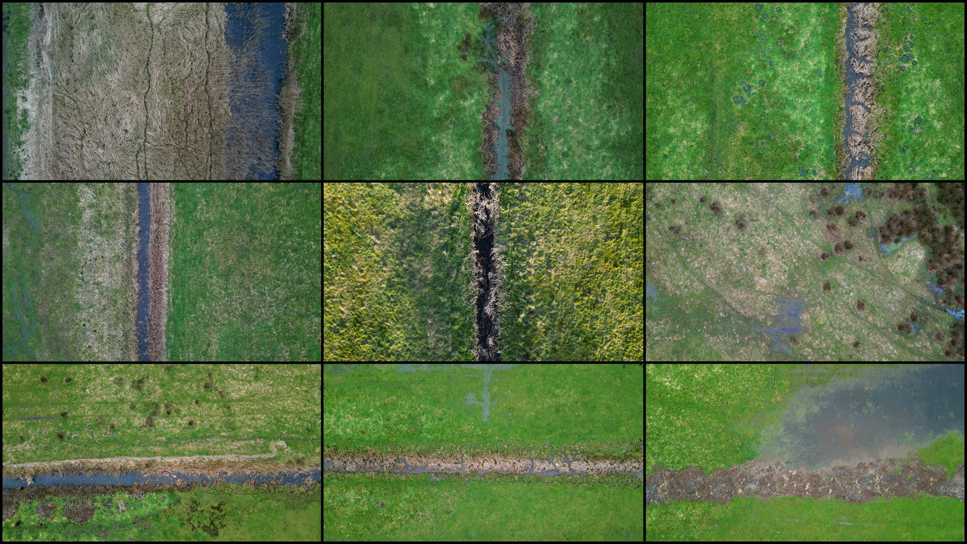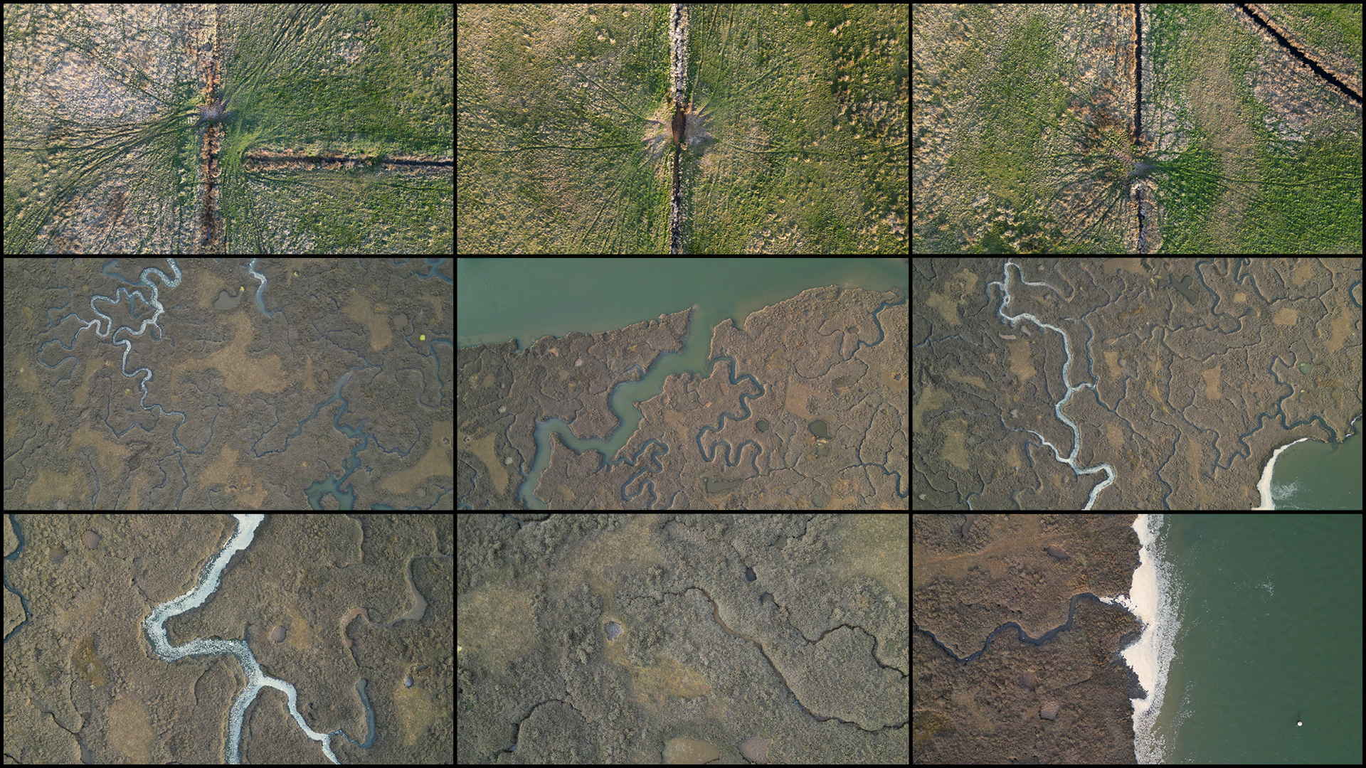 As part of this larger project, Allen focused on gathering of a large amount of aerial drone footage that he filmed himself across the UK between 2022 and 2025. This archive covers 12 distinct landscape typologies: coastal, geological, rivers, wetlands, greenfield, forests, agricultural, Earthworks, brownfield, industrial, transport, and suburban, with a large collection of new footage filmed in 2024 and 2025 in East Anglia and the Norfolk Broads.
