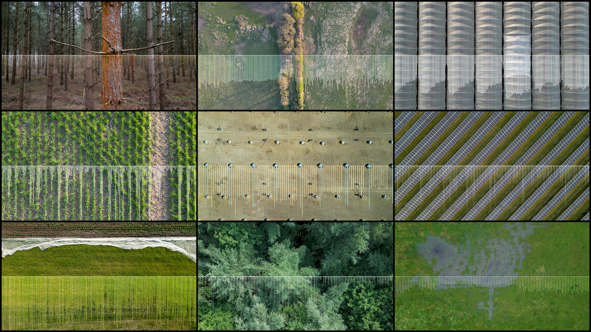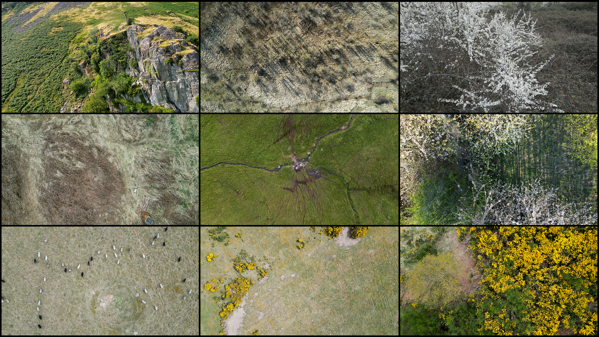Audio-visual research project exploring the sonification of a collection of drone footage gathered from around the UK