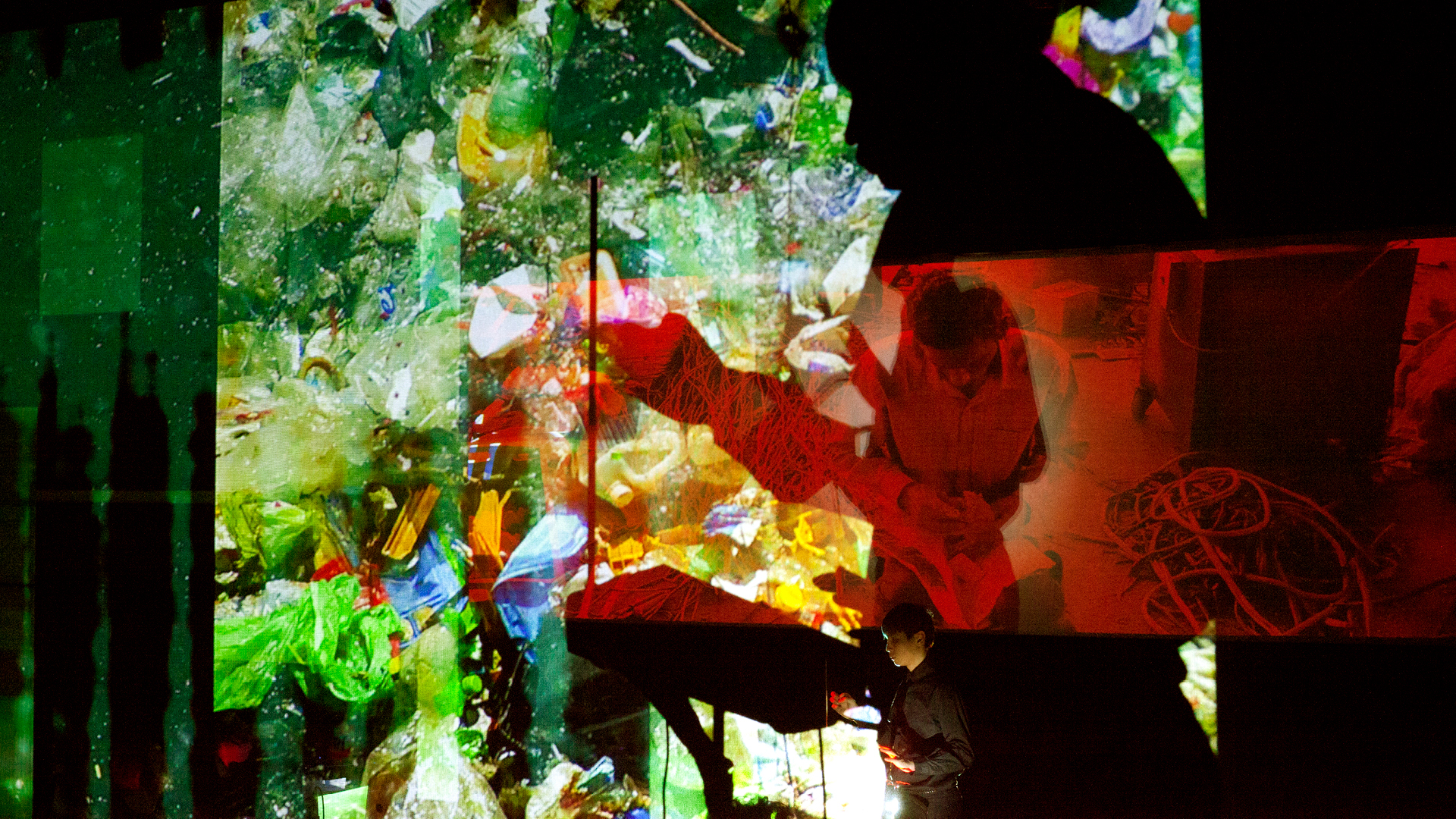 We began the musical collaborative process with a series of recording sessions with the contemporary gamelan group “Rhythm in Bronze” and the Chinese percussion ensemble “Hands Percussion” in Kuala Lumpur. Fragments and loops from these sessions were combined with field recordings we gathered during our production trips and then distributed across the 9 chapters that made up the show.