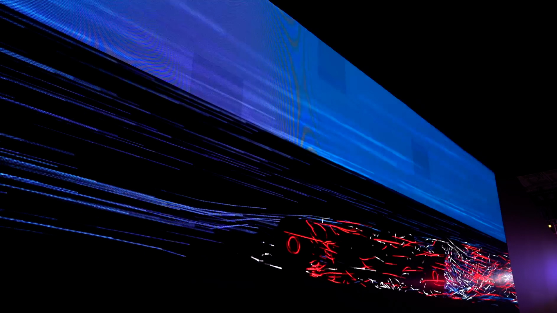 To achieve this we utilised two high-resolution LED screens that enveloped the audience, an incredible surround sound system provided by Bose. We then designed and art directed a pair of bespoke CGI animations that explored the aerodynamics the F1 cars and placed the visitors inside the physics, adrenaline, and speed of a race.